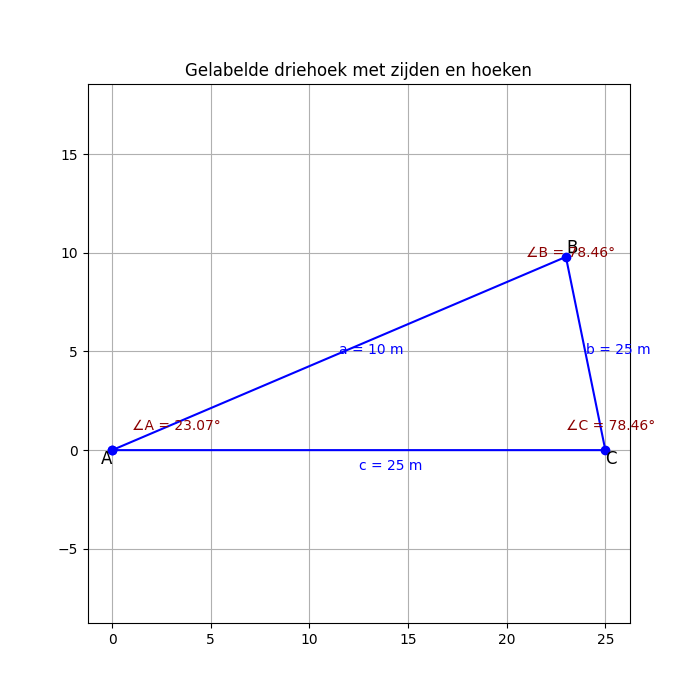 Als de afstand bijvoorbeeld 10 meter is in plaats van de overstaande zijde dan gebruik je: